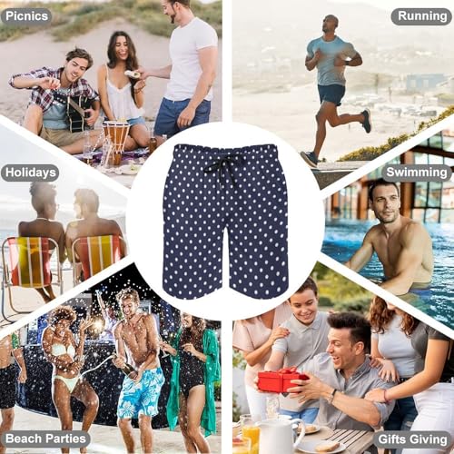 • Casual and Standout Appeal: Pair these Polka Dots Navy Blue Print mens beach shorts with flip-flops or sneakers for effortless vacation or gym looks. From board shorts men to mens funny swim trunks, this item complements any laid-back, summer-ready men swimming trunks vibe