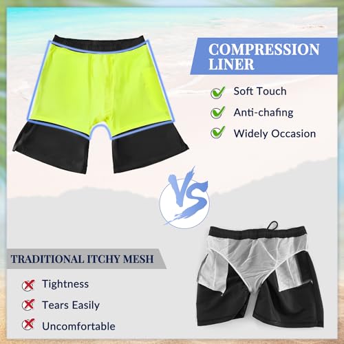 Mens Swim Trunks with Compression Liner - 2 in1 rapid Dry Swim Shorts Bathing Suits with Zipper Pockets