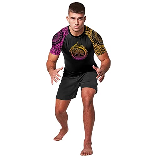 Workout Compression Shirt, Mens Rash Guard Short Sleeve, Stretchable Fabric Viking Tattoo Rash Guard Shirt
