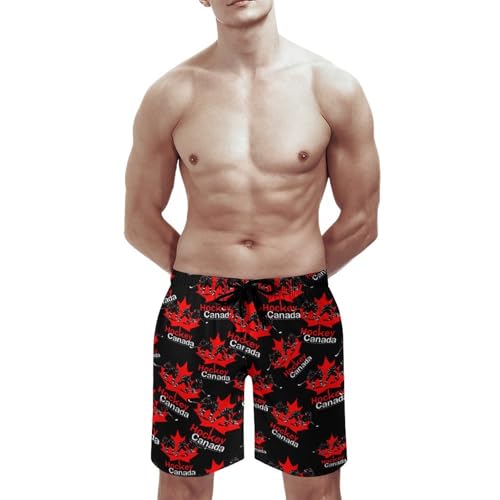 Canadian Canada Hockey Men's Board Shorts with Mesh Liner rapid Dry Swim Trunks Casual Beach Short Pants