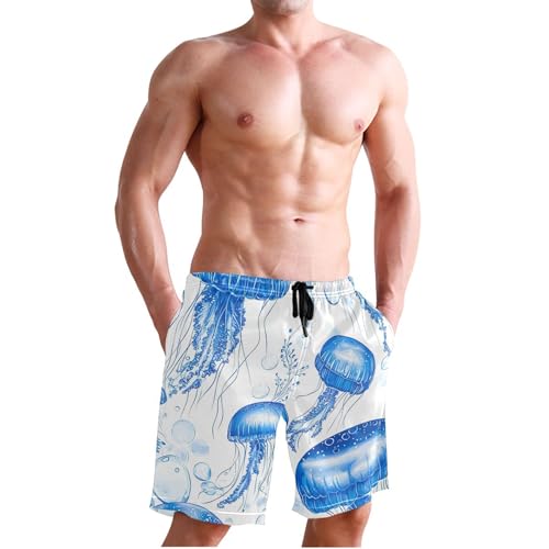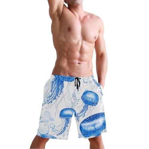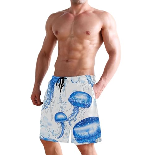 Cute Blue Jellyfish Men's Swim Trunks Funny Swimming Board Shorts Vacation rapid Dry Bathing Shorts S