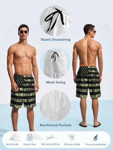 Why Choose Mens Swim Trunks with Compression Liner,Green Black Camo American Flag Men's Inseam Board Shorts expedient Dry Bathing Suit?