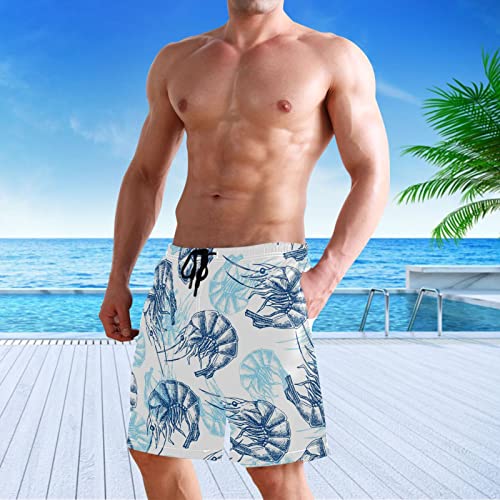 visesunny Shrimp Blue Pattern Men's Swim Trunks rapid Dry Bathing Suits Beach Swim Shorts