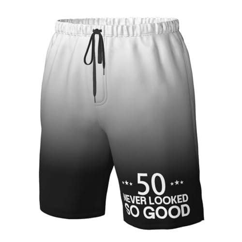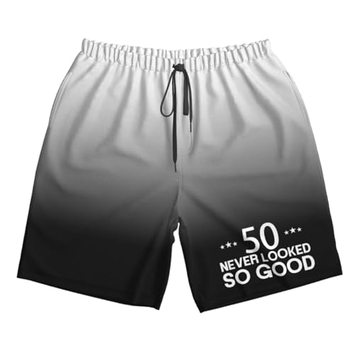 trending ! 50 at no time Looked So Good Men's Casual Board Shorts - Elastic Waist Drawstring Swim Trunks Swimwear Bathing Suits,