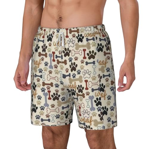 Men's Dog Bones Paw Print rapid-Dry Mesh Swim Trunks Stretch Lining Beach Shorts Surfing Summer Vacations White
