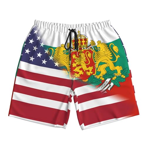 American Flag and Bulgarian Badge Flag Mens Summer Seabeach Casual Shorts Seaside Surfing Swim Trunks Beach Pants