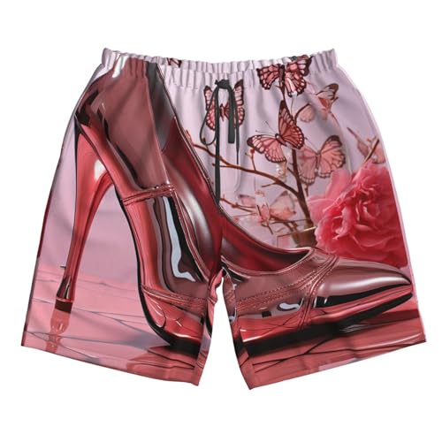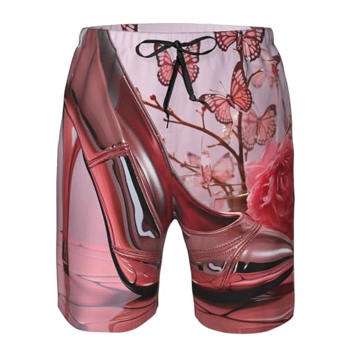 Men's Swim Trunks rapid Dry Bathing Suits Pink High Heeled Shoes Butterfly Beach Board Shorts Swimwear with Pockets