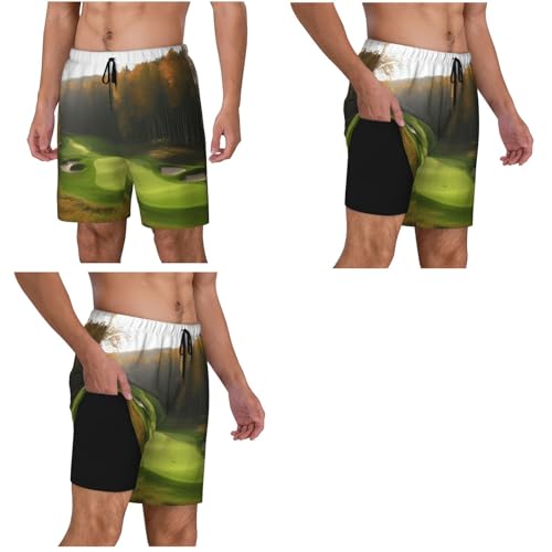 Men's Swim Trunks rapid Dry Board Shorts Forest Golf Course Beach Shorts with Pocket Bathing Suits for Men