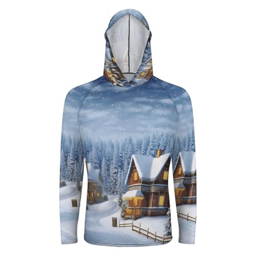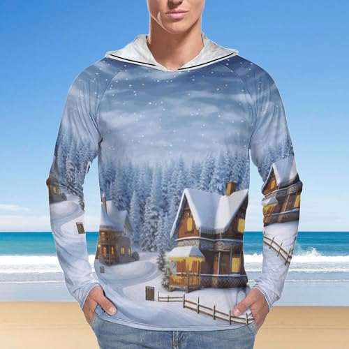 Men's Sun Shirts UPF 50+ Rash Guard Long Sleeve Sun Protection Hoodie Christmas Winter Happy Scene Lightweight Shirt M White