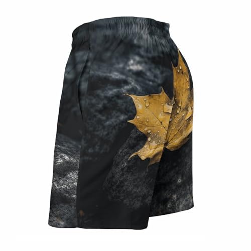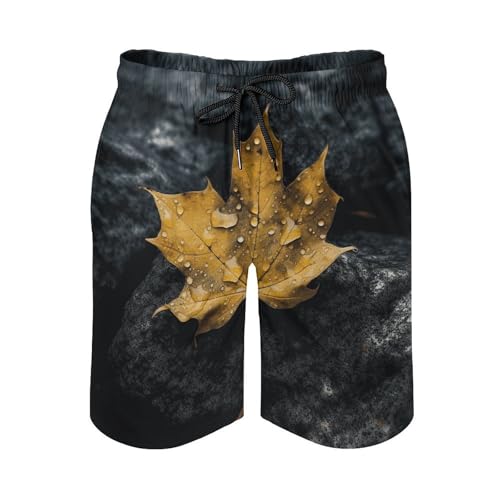Men's Swim Trunks rapid Dry Board Shorts with Pockets Beach Shorts Leaves on Wet Rocks Bathing Suits for Men