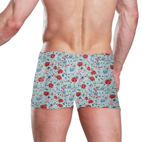July 4th Independence Day American Flag Rose Mens Swim Trunk Swim Brief Square Leg Board Short S B0404603
