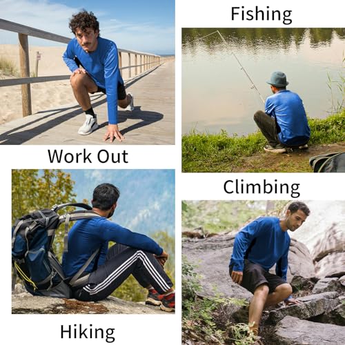 ProtectX 2 Pack Men's Long Sleeve Sun Protection Shirts rapid Dry UPF 50+ Lightweight Athletic Shirt for Workout Hiking Fishing Blue X-Large