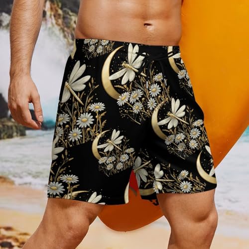 Dragonfly Floral Men's Swim Trunks rapid Dry Bathing Suit Board Shorts with Compression Liner