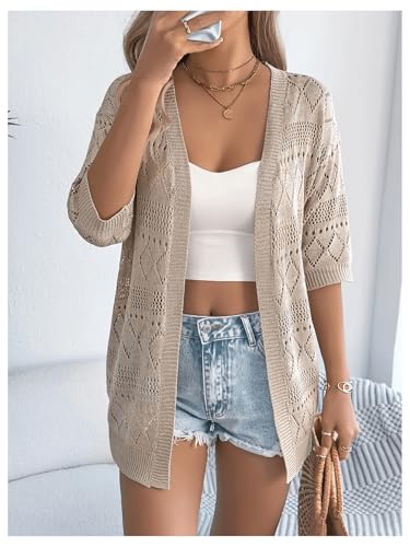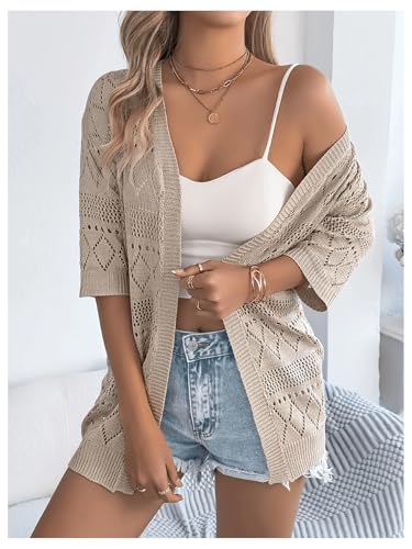 More information about OYOANGLE Women's Crochet Hollow Out Knit Oversized Sweater Top 3/4 Sleeve Lightweight Open Front Cardigan