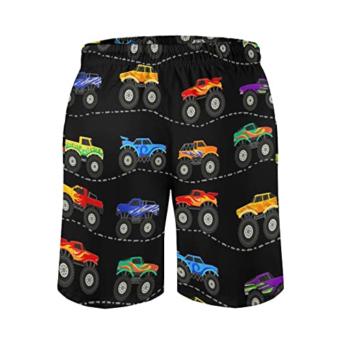 Boys Monster Truck Mens Swim Trunks rapid Dry Beach Shorts Mesh Lining Swimwear Bathing Suits with Pockets