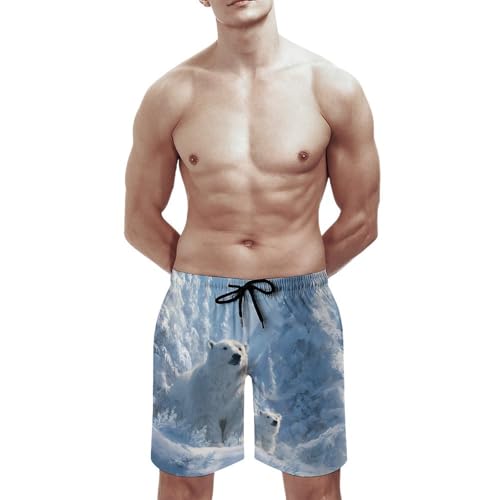 trending ! White Bear Family Mens Swim Trunks expedient Dry Board Shorts Beach Swimwear Bathing Suits