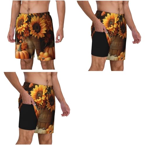 trending ! Men's Swim Trunks expedient Dry Board Shorts Pumpkin and Sunflower Beach Shorts with Pocket Bathing Suits for Men