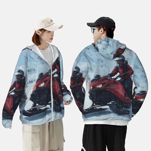 • UV Protection: Our Snowmobile long sleeve sun shirts features cutting-edge UPF 50+ technology, effectively blocking UV rays to ensure robust sun protection during your outdoor adventures. Designed with a hood to protect the neck, and other sun-exposed areas. Ideal for extended outdoor activities