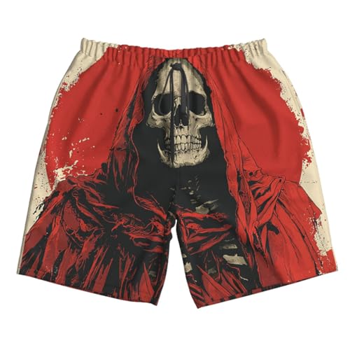 trending ! Men Swim Trunks Beach Shorts Swimwear Summer Bathing Suits - Grim Reaper Skull Death Retro