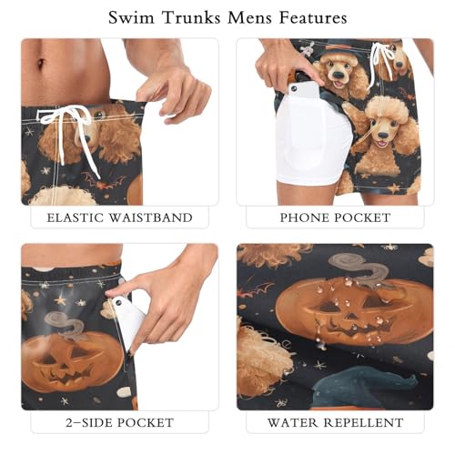 Halloween Poodle Men's Swim Trunks with Liner speedy Dry Beach Shorts Swimwear Bathing Suit S-XXL
