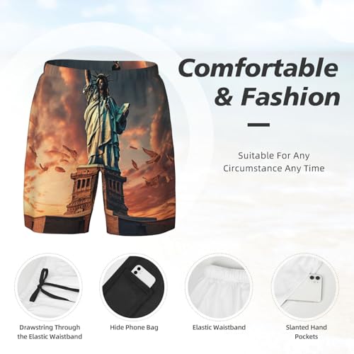 More information about Statue of Liberty in NYC Print Men trendy Functionality Swim Trunks Breathable Beach Shorts Surfing Gym Fishing