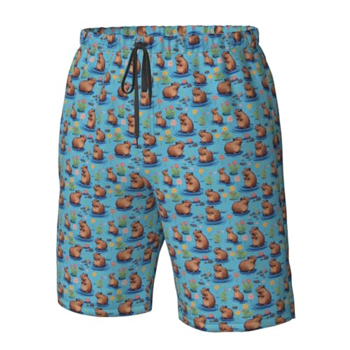 Fabric type: 100% PolyesterPattern: CartoonMens beach shorts SIZE Length in/cm 1/2 Hip in/cm 1/2 Waist in/cm S 20.4/52 21.2/54 12.6/32 M 21/53 22.8/58 13.8/35 L 21.6/55 24.4/62 15/38 XL 22.2/56 25.9/66 16.1/41 XXL 23.6/60 29/74 18.1/46High-Density Polyester Fabric: These Guinea Pig Illustration Print swim trunks crafted from high-density polyester yarn, ensuring softness, quick-drying properties, and breathability for maximum comfort in any situation.Elastic Waistband with Drawstring: A stretchy elastic waistband combined with an adjustable drawstring provides a secure fit and accommodates various body types effortlessly.Practical Pockets Triangle Lining: Equipped with two side pockets, one back pocket with a flap, and a triangular mesh lining to ensure no-chafing convenience while swimming or engaging in outdoor activities.Versatile Usage: for multiple scenarios such as surfing, hiking, running, lounging around the house, or simply enjoying time by the pool or beach. Perfect for everyday use. excellent materials and excellent craftsmanship ensure long-lasting durability.