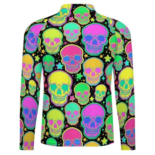 Bright Psychedelic Skulls Men's Rash Guard Long Sleeves rapid Dry Fishing Workout Shirts with Zipper