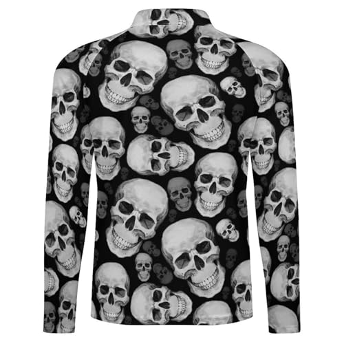Watercolor Tattoo with Skull Element Men's Rash Guard Long Sleeves rapid Dry Fishing Workout Shirts with Zipper