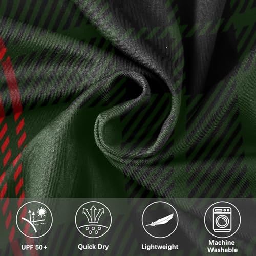 Black Green Red Plaid Men's UPF 50+ Swim Shirts relaxing Loose Rash Guard Long Sleeve Outdoors
