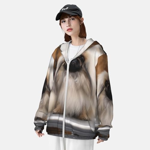 trending ! UPF 50+ Sun Protection Hoodie Rash Guard Long Sleeve Sun Shirt Pekingese Dog UV Shirt Full Zip Jacket