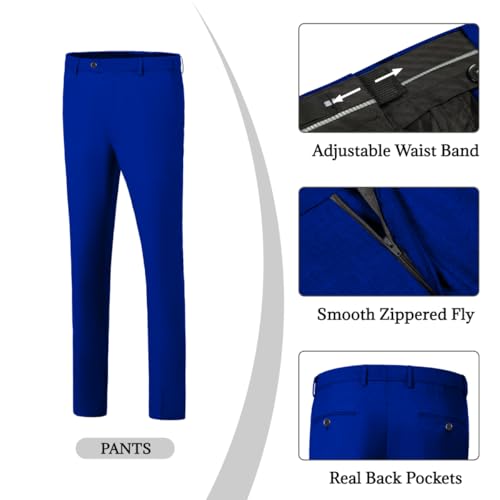 Fabric type: Mens' Suit: 80% Polyester, 20% ViscoseCare instructions: Dry Clean OnlyOrigin: ImportedACTUALLY 5 PIECE SET -- In addition to JACKET, VEST and PANTS, we also include a high-quality BOW-TIE and POCKET SQUARE.FEATURE -- SUIT JACKET: shawl lapel, one button closure, single breasted, side vents, 2 front flap pockets, 1 chest slip pocket, fully lined, slim fit style. SUIT VEST: four button, V-Neck, adjustable strap and satin material on the back; fully lined. SUIT PANTS: flat front, zippered fly, button end and adjustable waist tab, 2 back button pockets, 2 side slip pockets.SUPERIOR MATERIAL -- 80% polyester and 20% viscose for outer, it is cozy, softer, smoother, easier to wash and keep the shape. Polyester for inner, it is breathable and absorb sweat.OCCASIONS -- This suit set is with slim fit cut from 3D draping. Easy to match with any formal/business tuxedo shirt in any dinner, banquet, wedding, prom, evening, party, ball, graduation, ceremony, celebration, halloween, christmas, new year, festival, cruise, performance, dating, meeting, yacht party, magician, chorus, etc. From formal to informal, suitable for various occasions. It is also a great surprise for your friend, father, husband, brother and son.ABOUT SIZE - Please only look at our size measurements chart in image 2 and 3. The measurement method for size is shown in image 3. Perfect for everyday use. finest materials and excellent craftsmanship ensure long-lasting durability.