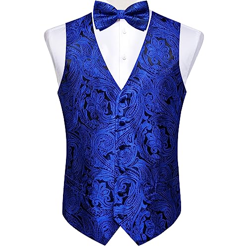 DiBanGu Men's Silk Paisley Vest and Necktie Set 6PCS Pre-tied Bow Tie Formal Waistcoat for Wedding Party