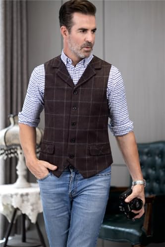 Why Choose Mens Casual Plaid Suit Vest Tweed Slim Fit Waistcoat for Wedding Groomsmen?