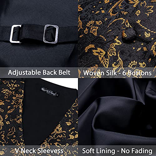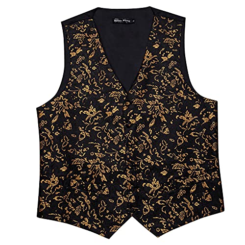 Barry.Wang Mens Paisley V-neck Suit Vest Formal/Leisure Silk Jacquard Waistcoat Tie Set 5PCS