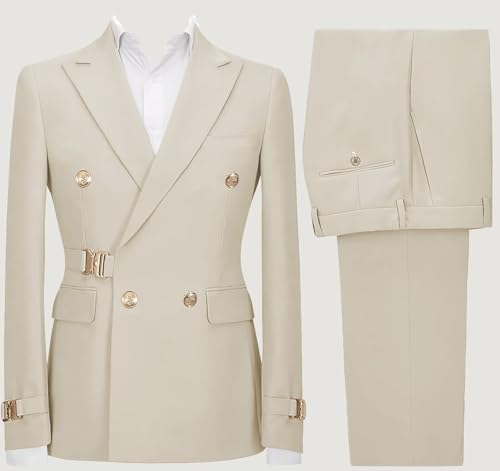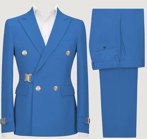 Mens 2 Piece Suit Slim Fit Double Breasted Suit Men Metal Buckle Casual Blazer Jacket Pants Outfit