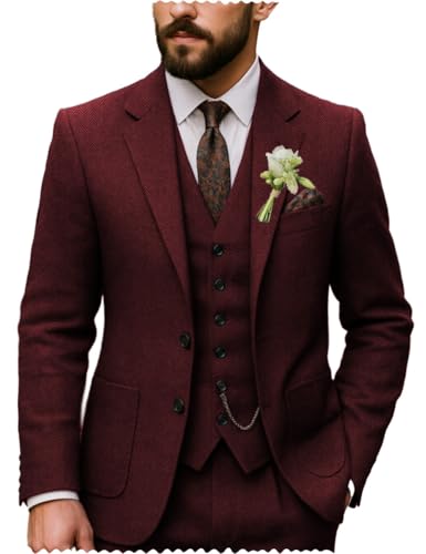 More information about vintage Men's Regular Fit 3 Piece British Tweed Woven Suits Tuxedos Blazer+Vest+Pants for Wedding