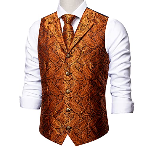trending ! Barry.Wang Mens Paisley Formal Silk Jacquard Suit Vest Tailored Collar Waistcoat Tie Clip Set 5PCS Wedding Party Tuxedo