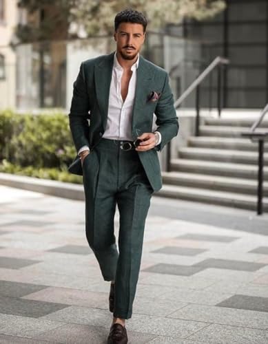 trending ! Men's 2 Piece Linen Suit Slim Fit Wedding Tuxedo Summer Beach Suit Prom Party Blazer Pants
