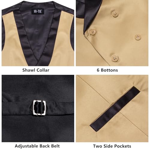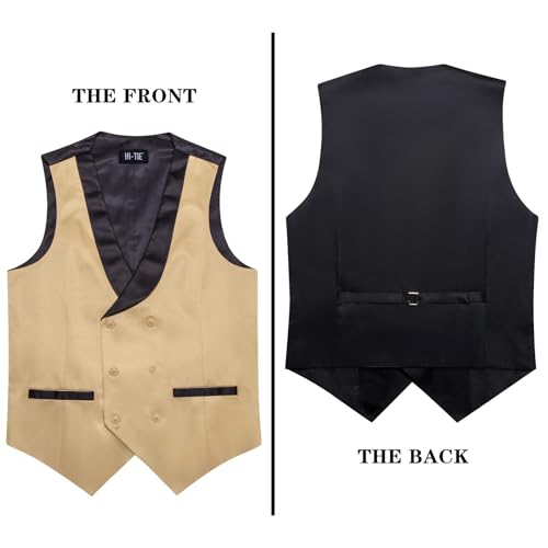 More information about Hi-Tie Mens Silk Suit Vest Double Breasted Shawl Collar Slim Fit Waistcoat U Neck Wedding Formal Tuxdeo