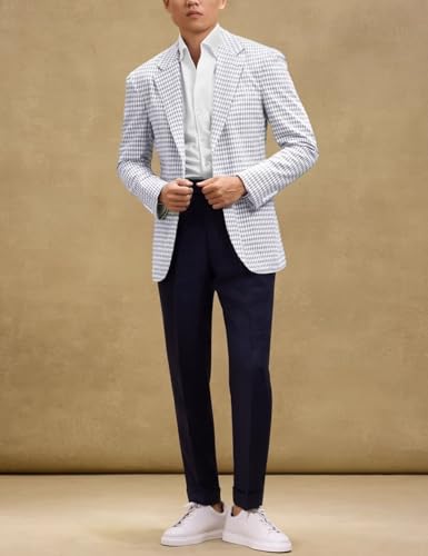 Men's One Button Plaid Blazer Slim Fit Notch Lapel Lightweight Casual Sport Coats for Wedding Prom