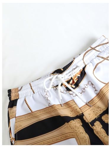 - This casual two piece outfit features graphic print, a stand collar, short sleeve t-shirt, and matching drawstring waist shorts