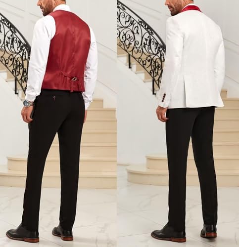 Men's Floral Jacquard Suit 3 Piece Slim Fit Suits Tuxedo Shawl Lapel One Button Suit for Men Wedding Party Prom Dinner