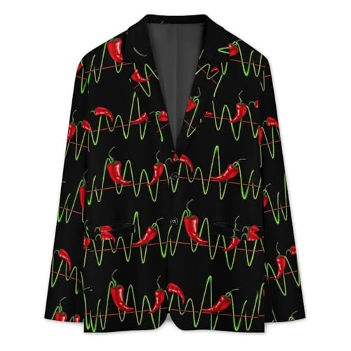 Chili Pepper Heartbeat Mens Casual Blazer Button Suit Jacket Lightweight Sport Coat for Work Business