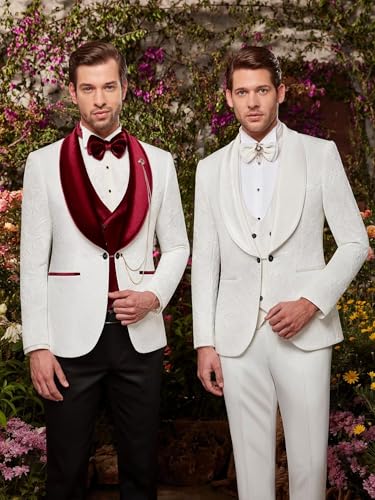 Men's Suit Slim Fit 3 Piece Suits for Men Wedding Tuxedo Floral Suit Jacket Vest Pants Set Business Prom Suit