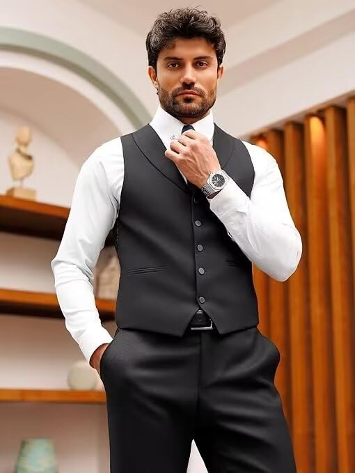 • 【DESIGN】:Package includes 1*Blazer Jacket, 1*Vest and 1*Pants. The men's blazer has four-button cuffs, flap pockets, interior pockets, fully lined, featuring notch lapel and two buttons closure; And the men's suit vest features adjustable back belt and side pockets.Pants with 2 side slant pockets and 2 back pockets.
