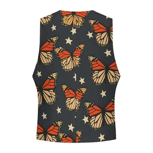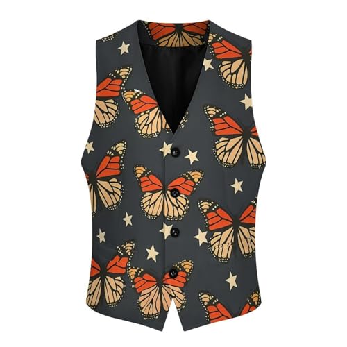 trending ! Monarch Butterfly U.S. Flag Suit Vest for Men Slim Fit Sleeveless Jacket V Neck Business Waistcoat Button Up Dressy Top