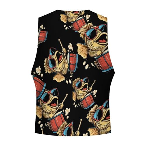 Bassfish Red Drum Men's Suit Vests Business Formal Dress Vest V-Neck Waistcoat for Wedding Casual
