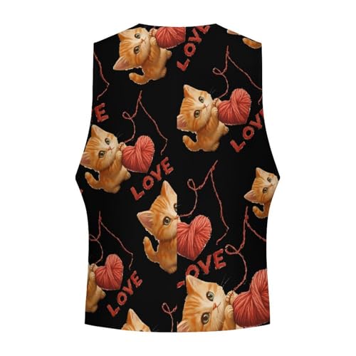 trending ! Cat Heart Men's Suit Vests Business Formal Dress Vest V-Neck Waistcoat for Wedding Casual