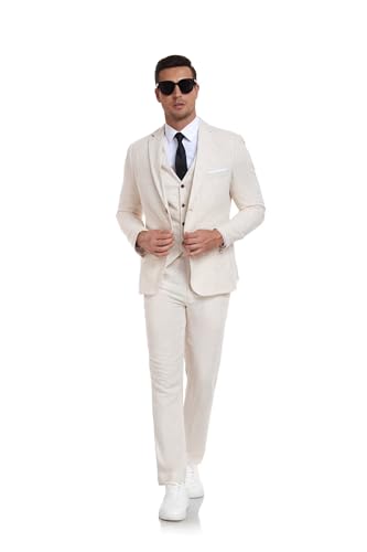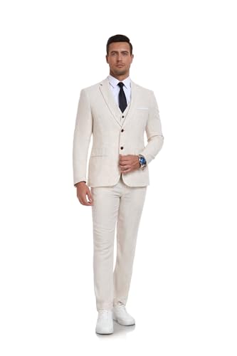 More information about Men's 3-Piece Linen Suit Casual Slim Fit Vintage Suits Groomsmen Tuxedos Wedding Summer Beach Prom Blazer Pants Set