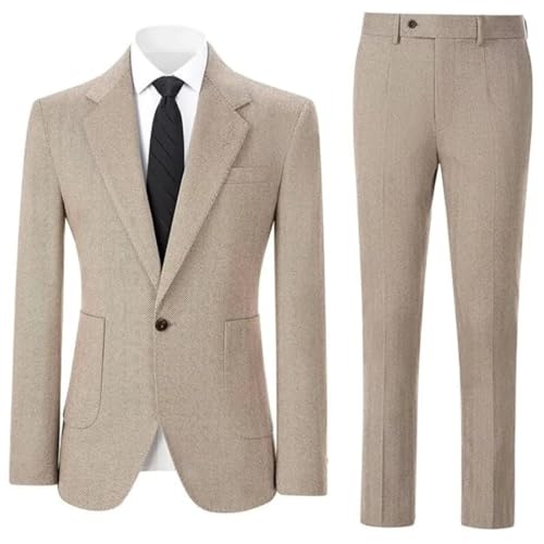 Men's Slim Fit Herringbone Tweed Suit | 2-Piece Wool Blend Set (Jacket+Pants)